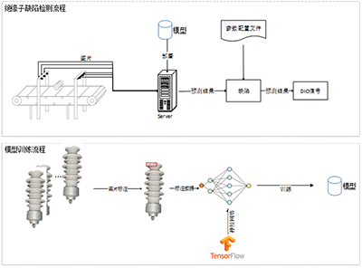 使用人工智能等計算機視覺技術,對絕緣子拍照,裝置可以自動識別絕緣子的各種表面缺陷,如:開裂,破碎,鐵點,橘釉等。通過系統自帶的基于人工智能算法的計算機視覺模塊與工業網絡相機,最終實現絕緣子產品質量的自動檢測,并通過給出DIO信號指導生產線后續工作的進行。