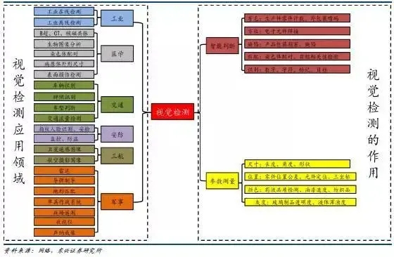 目前,將近80%的工業(yè)視覺(jué)系統(tǒng)主要用在檢測(cè)方面,包括用于提高生產(chǎn)效率、控制生產(chǎn)過(guò)程中的產(chǎn)品質(zhì)量、采集產(chǎn)品數(shù)據(jù)等。機(jī)器視覺(jué)自動(dòng)化設(shè)備可以代替人工不知疲倦的進(jìn)行重復(fù)性的工作,且在一些不適合于人工作業(yè)的危險(xiǎn)工作環(huán)境或人工視覺(jué)難以滿足要求的場(chǎng)合,機(jī)器視覺(jué)可替代人工視覺(jué)。在工業(yè)4.0的趨勢(shì)下,機(jī)器視覺(jué)行業(yè)方興未艾,機(jī)器視覺(jué)產(chǎn)品在其他下游行業(yè)中的應(yīng)用仍有長(zhǎng)足發(fā)展空間。