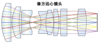此外,像方遠心鏡頭不會遭受放射性測量的cos4θ衰減,因為光線垂直于整個區域內的傳感器。這是有利的,因為假設鏡頭設計內沒尚未構建選擇性光暈,它能使圖像的相對照明分布更加均勻。像方遠心度并非遠心鏡頭所獨有,因為也可以在傳統鏡頭(如固定焦距鏡頭)中指定像方遠心度。不過,市場上大部分固定焦距鏡頭都未設計為像方遠心,因為它們通常需要額外的元件(因此需要更多成本)來實現遠心度,并且根據所使用的傳感器尺寸,可能需要相當大的直徑。如果非遠心鏡頭是像方遠心,通常會有標注。
