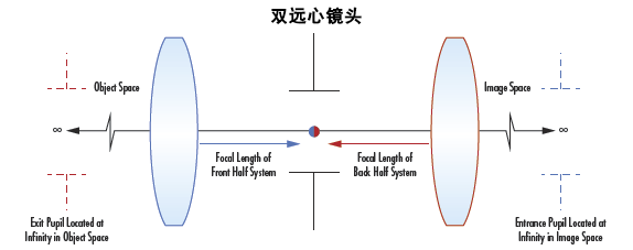 雙遠心鏡頭是最準確的遠心鏡頭類型,因為其視場完全不受物體位置或傳感器位置變化導致的更改影響,也不會遭受任何cos4θ衰減。
