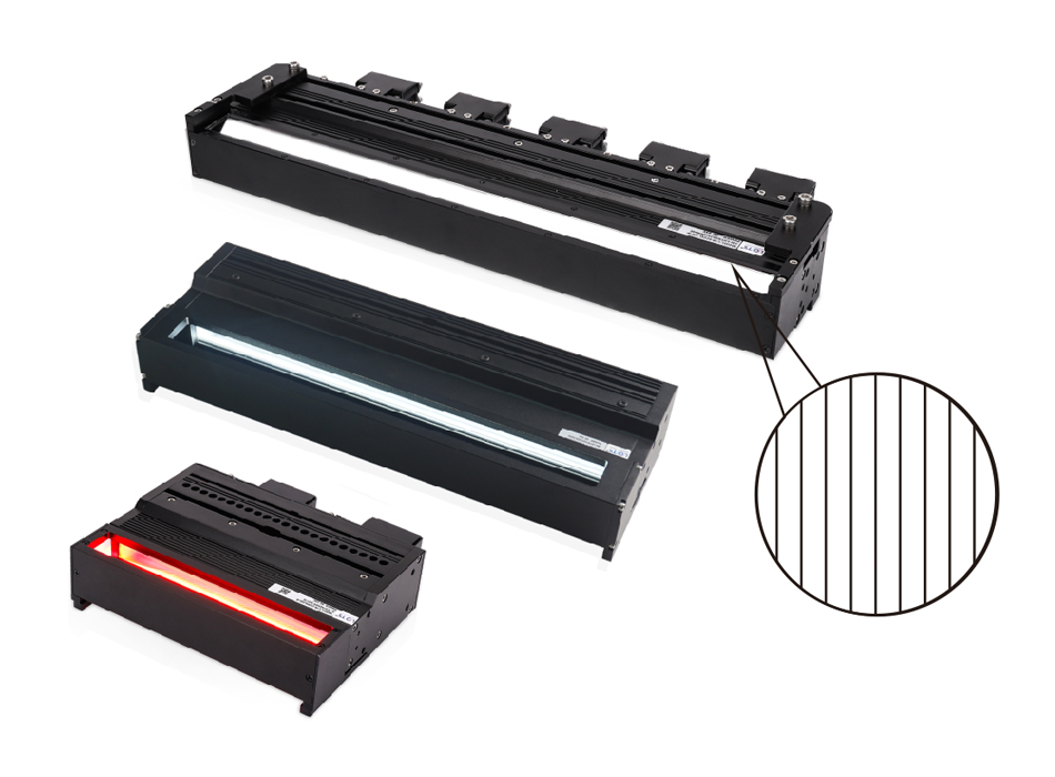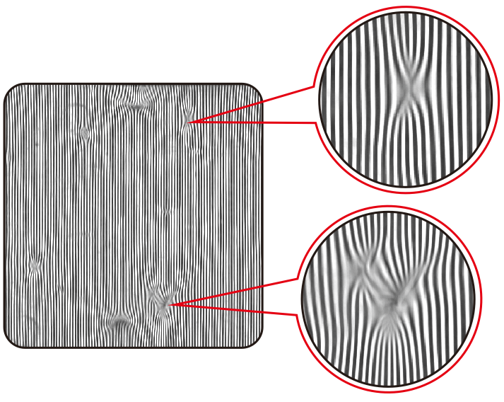 說(shuō)明:對(duì)于光滑表面的凹凸點(diǎn),通過(guò)判斷條紋的彎曲很容易找出缺陷位置,放大缺陷。線(xiàn)陣檢測(cè)面積大,可根據(jù)樣品的大小選擇相對(duì)大的光源來(lái)滿(mǎn)足視野的,均勻性相對(duì)面陣更有優(yōu)勢(shì)。