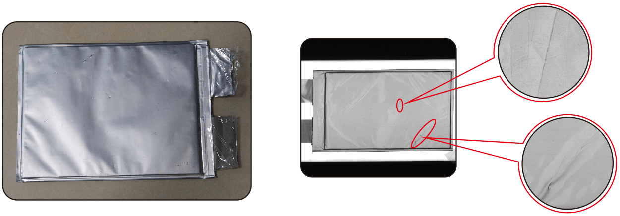 在卷膜材料中容易產生涂膜不良,刮傷、裂痕、多料、少料、雜質等問題,這些不良若流入下一環節,封裝成形后會存在致命的危害,所以表面缺陷檢測在鋰電生產中尤為重要。