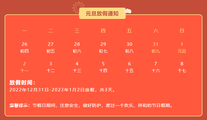 在這辭舊迎新之際,我們馬上就要走進2023年,新年伊始,一切都是嶄新的開始,愿每個人都能收獲更好的自己,祝福大家新年快樂,闔家幸福!