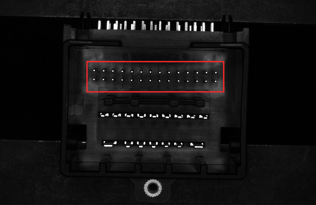 檢測(cè)汽車連接器針腳,使用高角度環(huán)形光垂直照射,使針尖部分的輪廓明顯,有利于機(jī)械手的抓取跟對(duì)位。