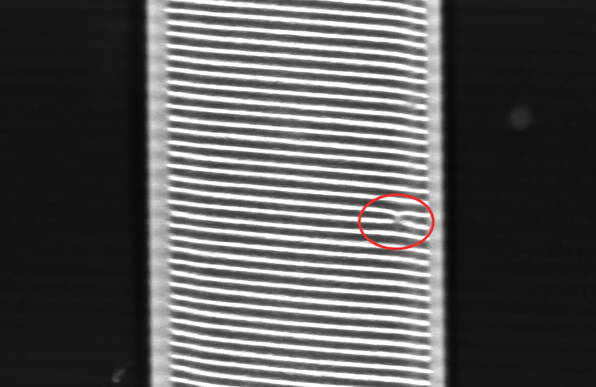 汽車反光條在汽車上應(yīng)用較多,但這類高反光物也是缺陷檢測(cè)難點(diǎn),使用柵格平面無(wú)影光源可良好凸顯缺陷,其通過(guò)線條的變形位置來(lái)判斷出缺陷。