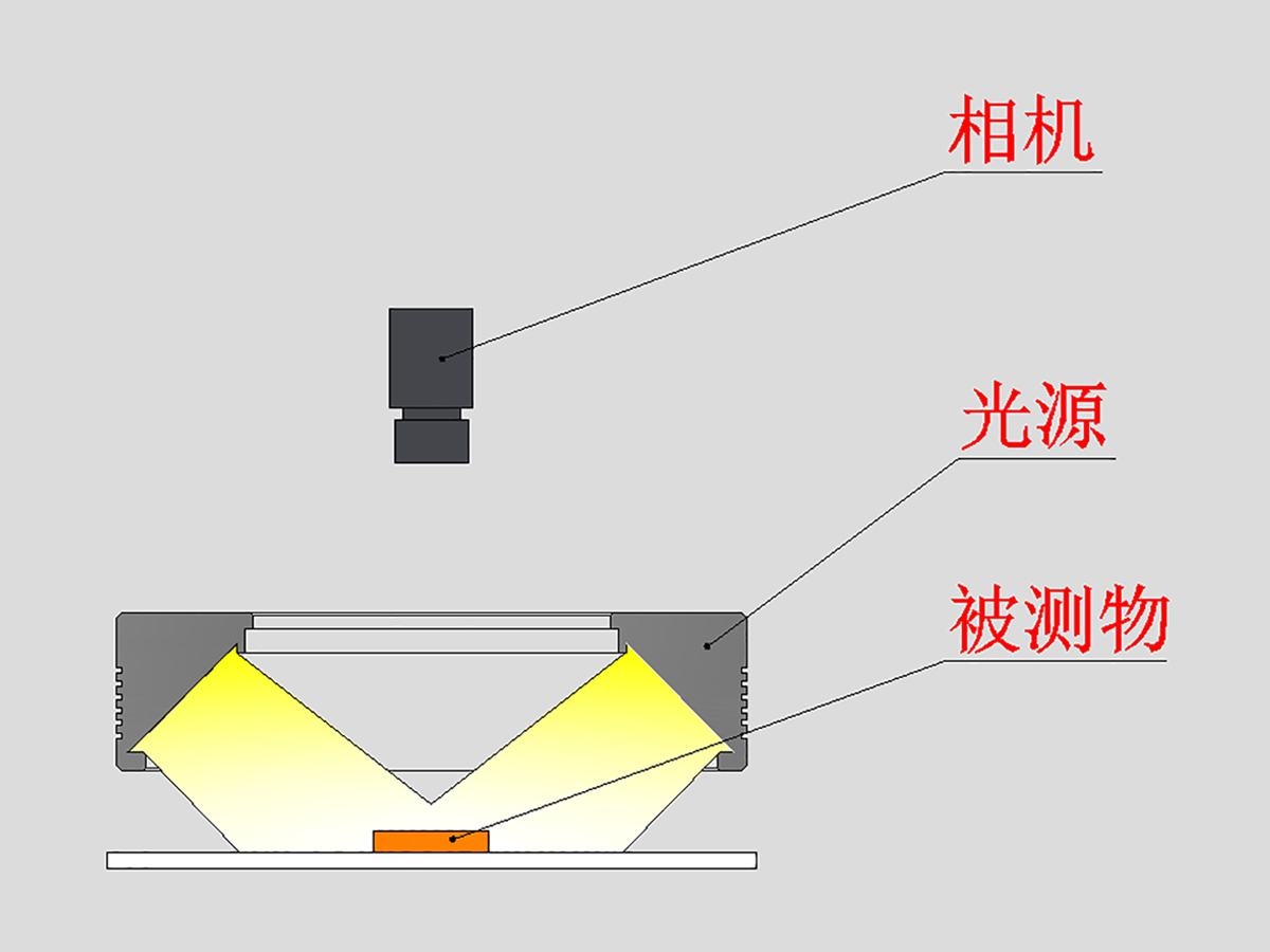 檢測塑料蓋的表面劃痕、碰傷、臟污等缺陷,一般采用高角度垂直光路類型的光源,如高角度環(huán)形光或同軸光源,但是產(chǎn)品表面帶有微弱的曲面、且為磨砂面,采用此類光源會(huì)不均勻,會(huì)導(dǎo)致灰度差別比較大,影響檢測結(jié)果。