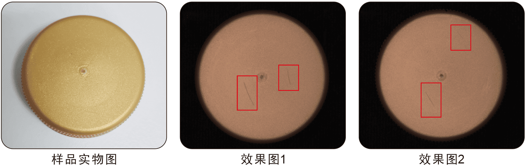 效果圖1產(chǎn)品光源拍攝均勻且LOGO與背景對(duì)比明顯;效果圖2產(chǎn)品缺少印刷LOGO為全白無特征,判定為不合格產(chǎn)品。