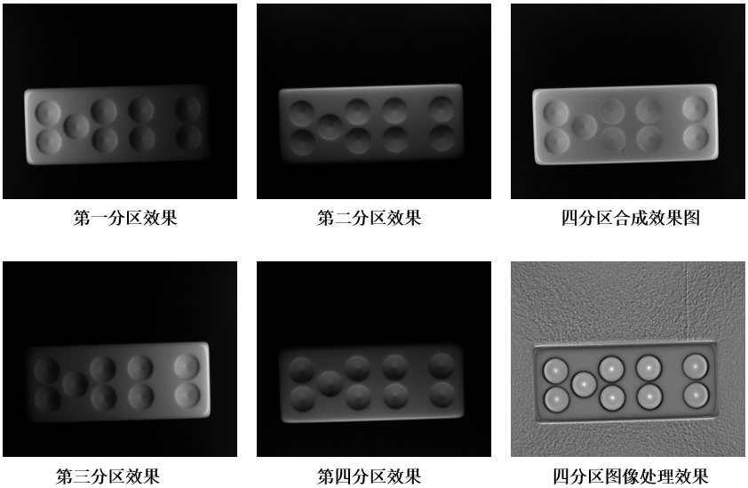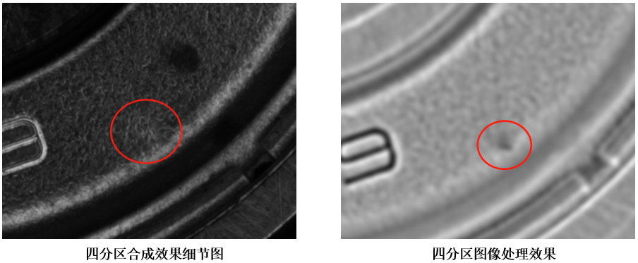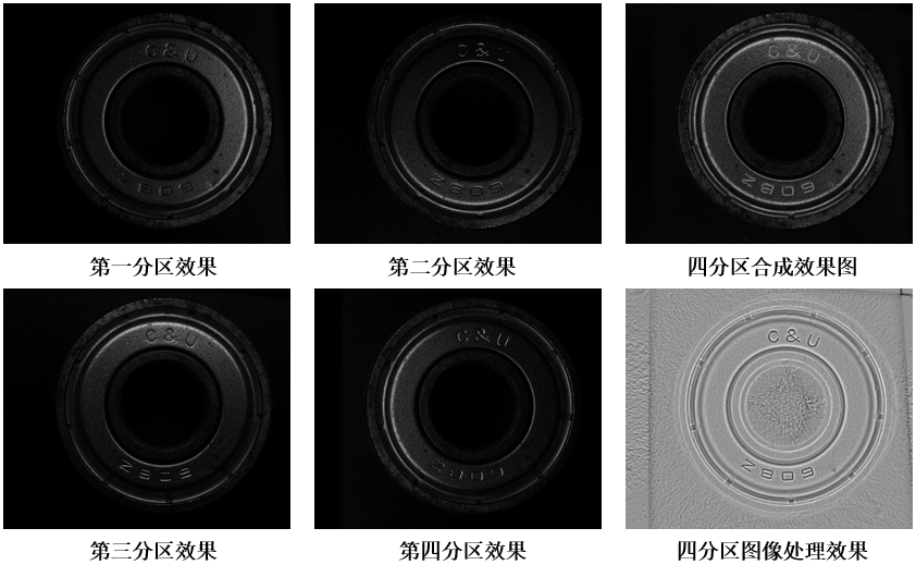 軸承上輕微的凹凸,單方向打光能突出一些微弱的效果,整體幾乎看不出效果,但是通過四分區(qū)分別成像,經(jīng)過2.5D圖像處理分析能將微弱的凹凸呈現(xiàn)出來。