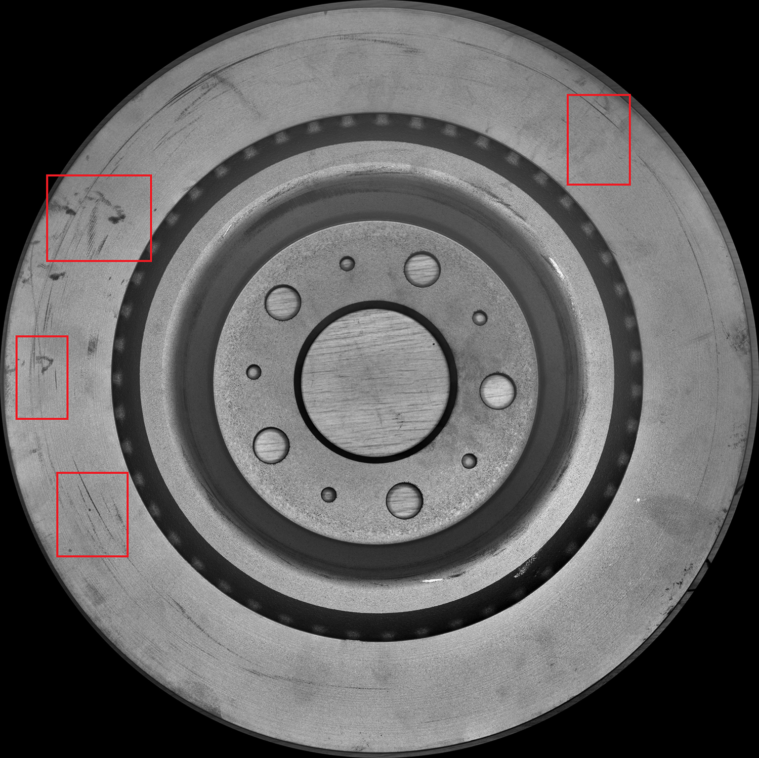 在汽車制造領(lǐng)域,剎車盤作為車輛制動系統(tǒng)的關(guān)鍵安全部件,其質(zhì)量直接影響到駕駛員的行車安全。剎車盤生產(chǎn)過程中因不同生產(chǎn)工藝、生產(chǎn)環(huán)境、人工操作等因素,其成品常存在多種缺陷。表面缺陷主要有劃痕、砂眼、凹坑、生銹、磕碰、裂紋、風道異物等,這些缺陷會直接影響剎車盤的強度、硬度、應力、承受力等多項技術(shù)指標,從而縮短使用壽命,并帶來嚴重的安全隱患。因此,對剎車盤外觀缺陷進行精確檢測顯得尤為重要。