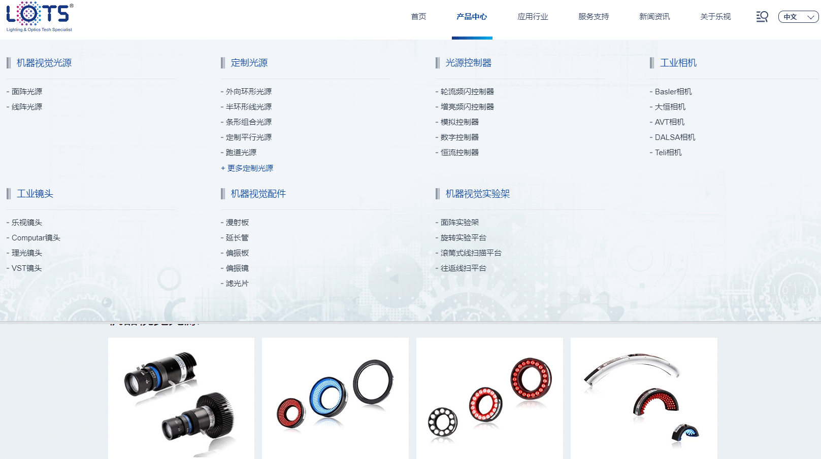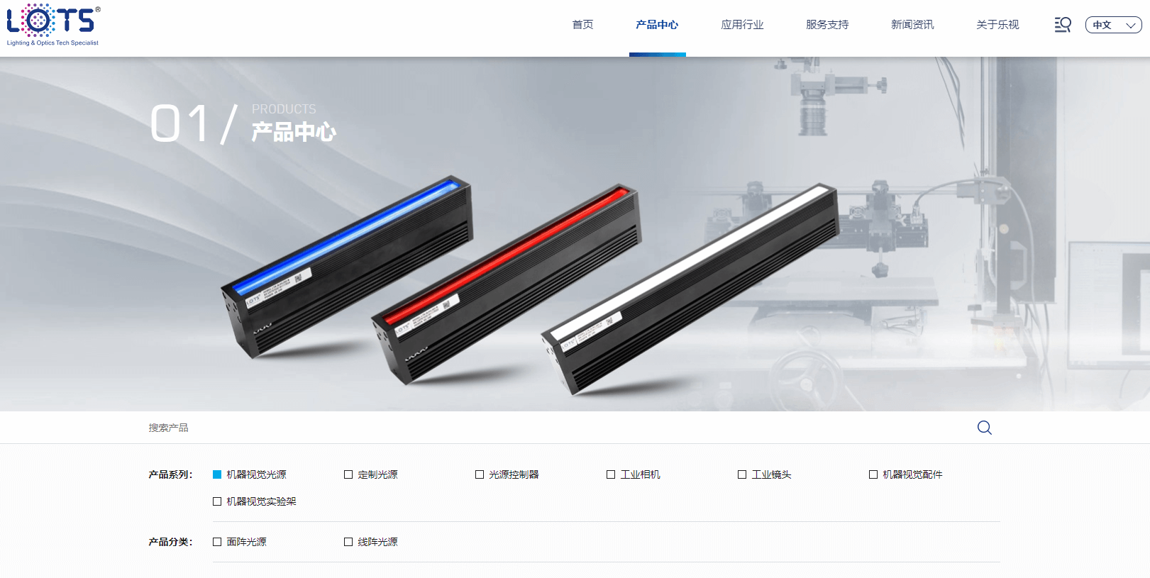 產(chǎn)品中心是樂視科技主要核心欄目,二級欄目包含機器視覺光源、定制光源、光源控制器、工業(yè)相機、工業(yè)鏡頭、機器視覺配件、機器視覺實驗架等幾個大類,產(chǎn)品內頁附有最新規(guī)格參數(shù)、圖紙下載,供您方便查閱。