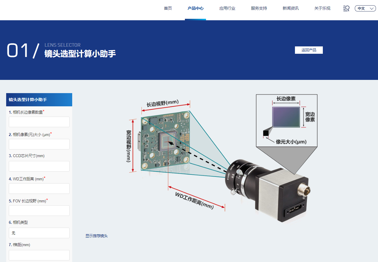 網(wǎng)站新增了鏡頭選型助手計算功能,方便所有工程師選型鏡頭相機。