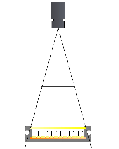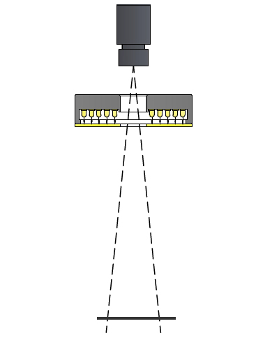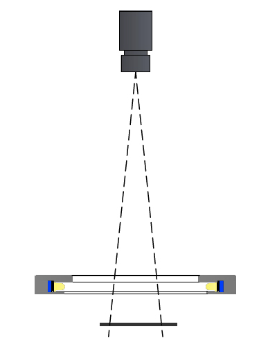 (1) 背光底部照射方式:優點在于可以突出輪廓邊緣,但由于此產品放在黑色模具中進行檢測,會遮擋住相機受光,所以不適用此打光方式。