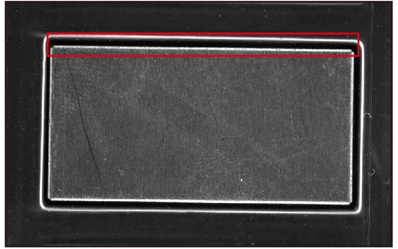 (4) 均勻光效果:對于金屬或光滑類的產品,同樣的采用正面暗場的方式,可適當選用均勻較好的帶漫反射板或無影光類型照射,可提升效果,如下圖能夠使塑料模具背景完全消失,從而更好的檢測輪廓邊。