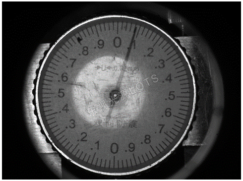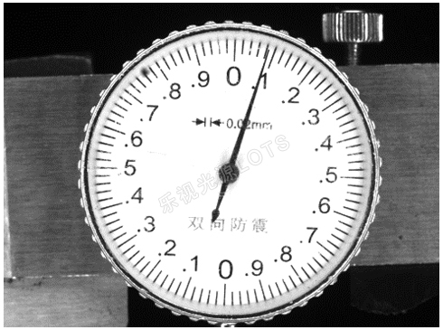 由上面三張效果圖可以看到,環形光源會造成表盤表面玻璃上出現光斑,圓頂光源則有表盤中間不均勻的情況,以上兩種方式均會對檢測造成影響,而低角度無影光源,能夠在圖像均勻的情況下,更突出了字符及表針與背景的對比,達到檢測目的。