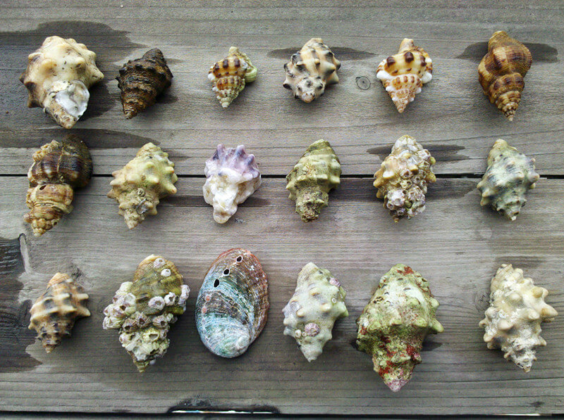 在沙灘上撿一些小貝殼,驚喜的發現了小寄居蟹,寄居蟹真幸福,有這么多漂亮的免費房子可以居住。