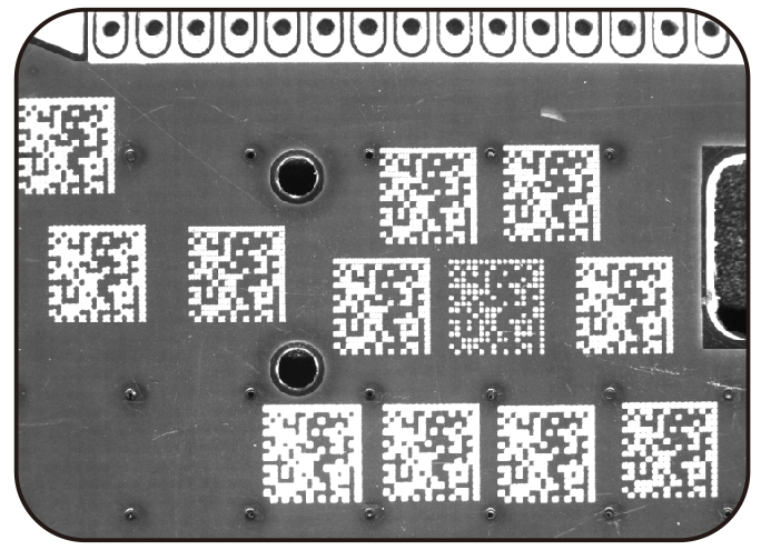 光源兩側斜向照射產品,顯現豎方向劃痕。使用大功率條形光源拍攝,二維碼輪廓清晰易識別。