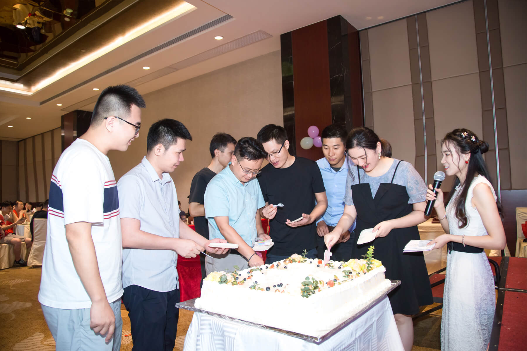 慶典分為頒發(fā)獎(jiǎng)品和晚宴兩部分,熱鬧的晚會(huì)從領(lǐng)導(dǎo)致詞、美味的蛋糕拉開(kāi)帷幕。