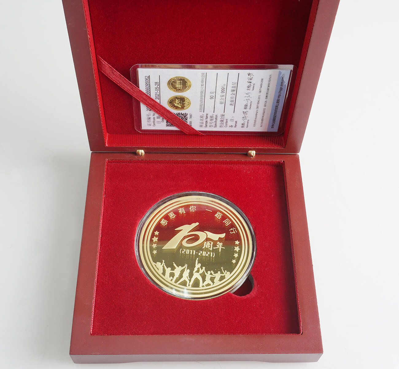 服務(wù)滿3-5周年的員工,可獲得40克定制純銀鍍金紀(jì)念幣1枚;
