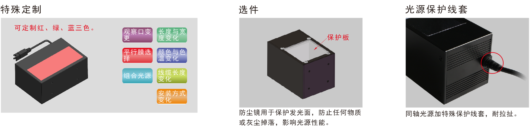 * 紫外和紅外光源可根據客戶要求定制。
