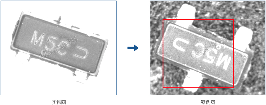 電阻為陶瓷材質(zhì),表面粗糙度高,噪點影響比較嚴(yán)重,采用低角度環(huán)光均勻照射,效果明顯。