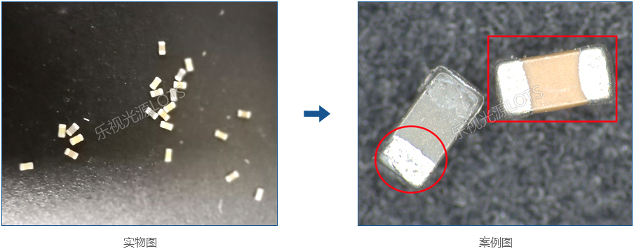 使用彩色相機配合色溫準(zhǔn)確的環(huán)形無影光,能更加真實的還原電容的本色,區(qū)分貼片電容的三個部分。