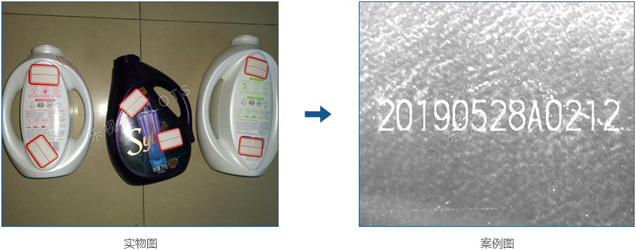 產(chǎn)品不是平整的端面,需檢測(cè)圓柱上面的字符。垂直拍攝影響太大,用條光源加偏振消除影響,效果明顯。